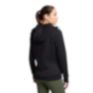 - Schwarzer Damen-Hoodie mit Reißverschluss, Stehkragen und Kapuze mit Kordelzug