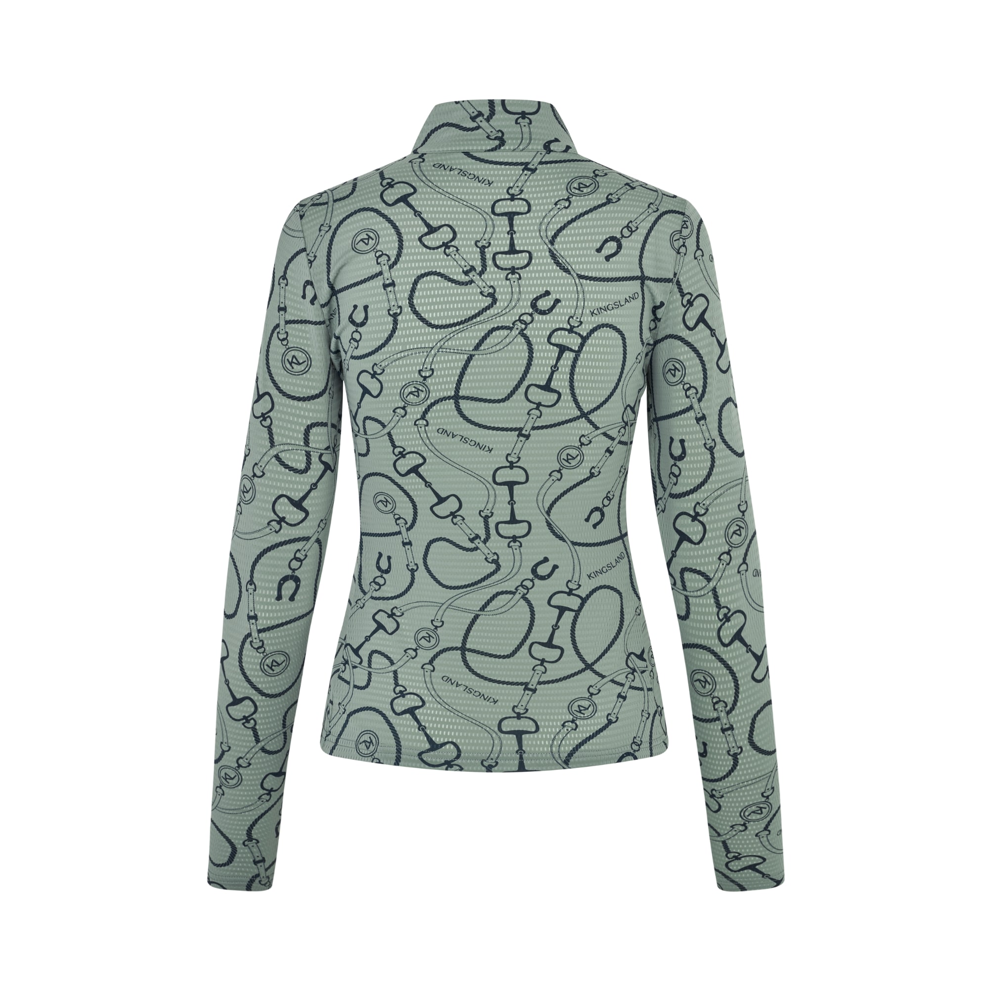 Grünes, langärmeliges Reitshirt mit pferdeinspirierten Motiven von Kingsland.