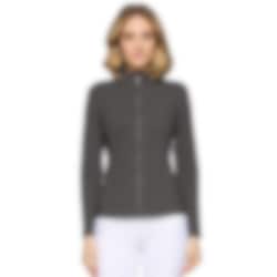 Dunkelgraues Oberteil mit Reißverschluss und schmeichelhafter, femininer Passform.