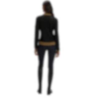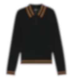 Pam ist ein elegantes und stilvolles langärmliges Poloshirt, gestaltet mit zwei kontrastierenden Streifen am Kragen, an den Ärmelabschlüssen und am Saum sowie einer klassischen Knopfleiste mit drei Knöpfen vorne. Am linken Ärmel befindet sich ein exklusiver Kunstleder-Patch mit BOSS EQUESTRIAN-Logo, der das durchdachte Design unterstreicht.