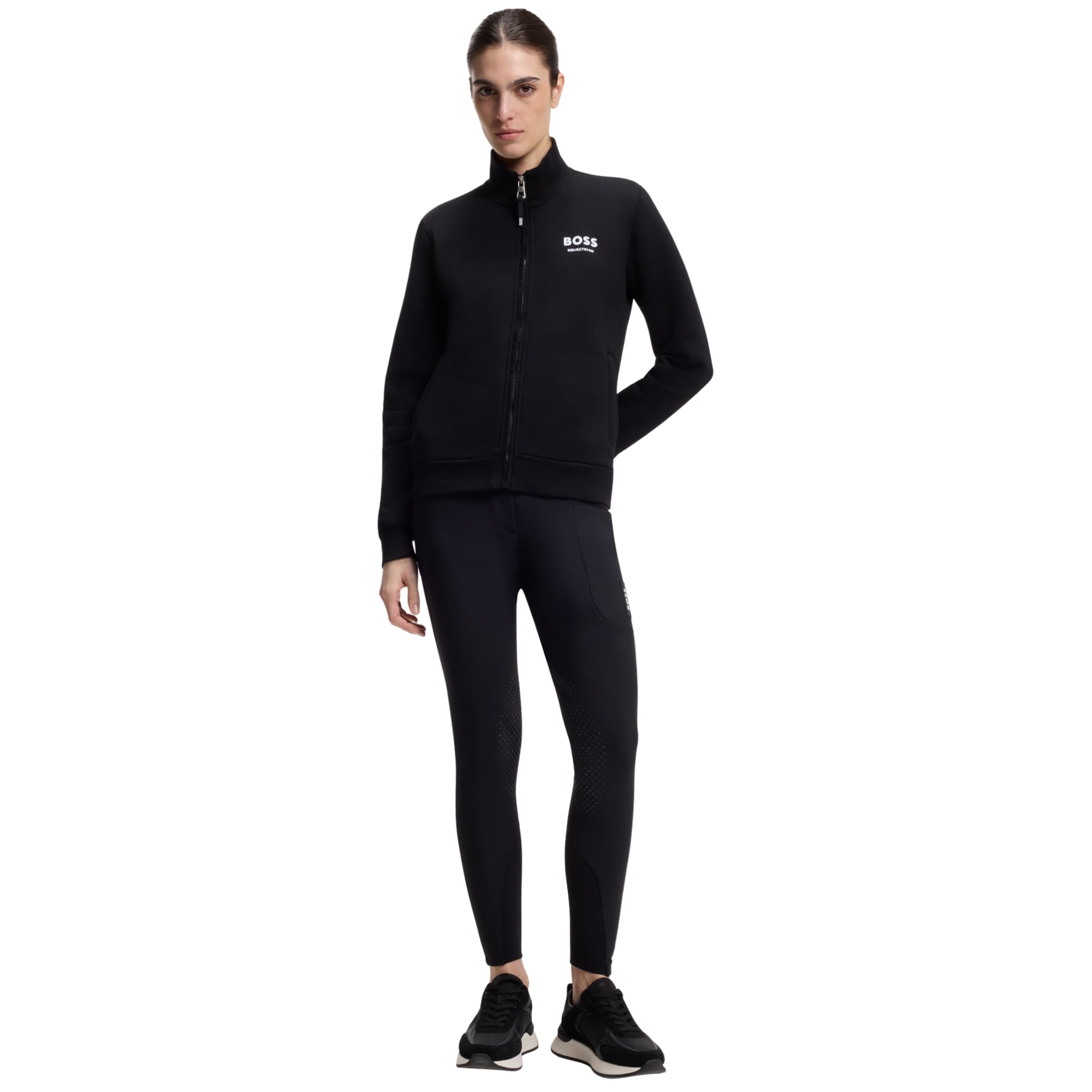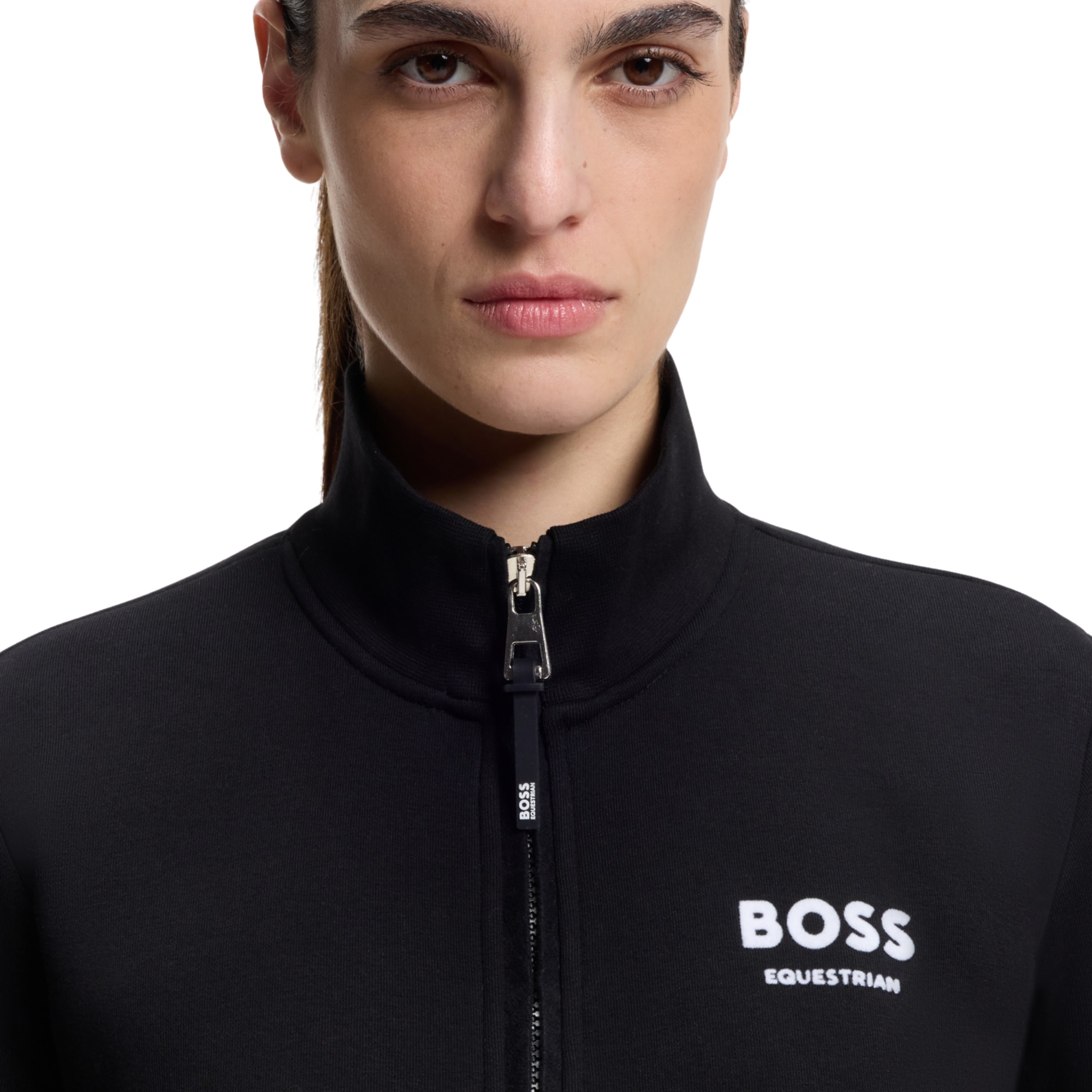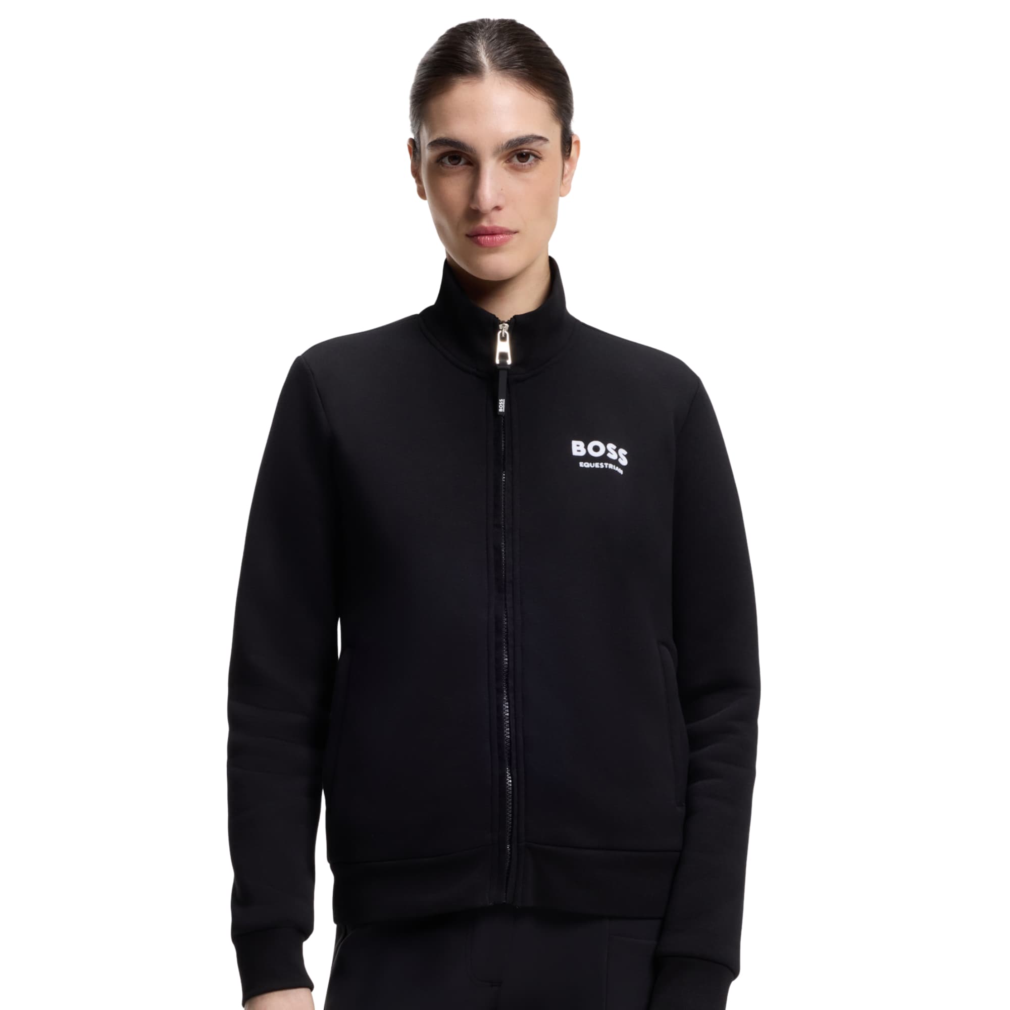 Boss Equestrian Paris Sweatshirt in Schwarz, ein stilvolles und bequemes Sweatshirt aus Baumwolle/Polyester mit gebürsteter Innenseite, Reißverschlusstaschen und klassischem BOSS-Logo.