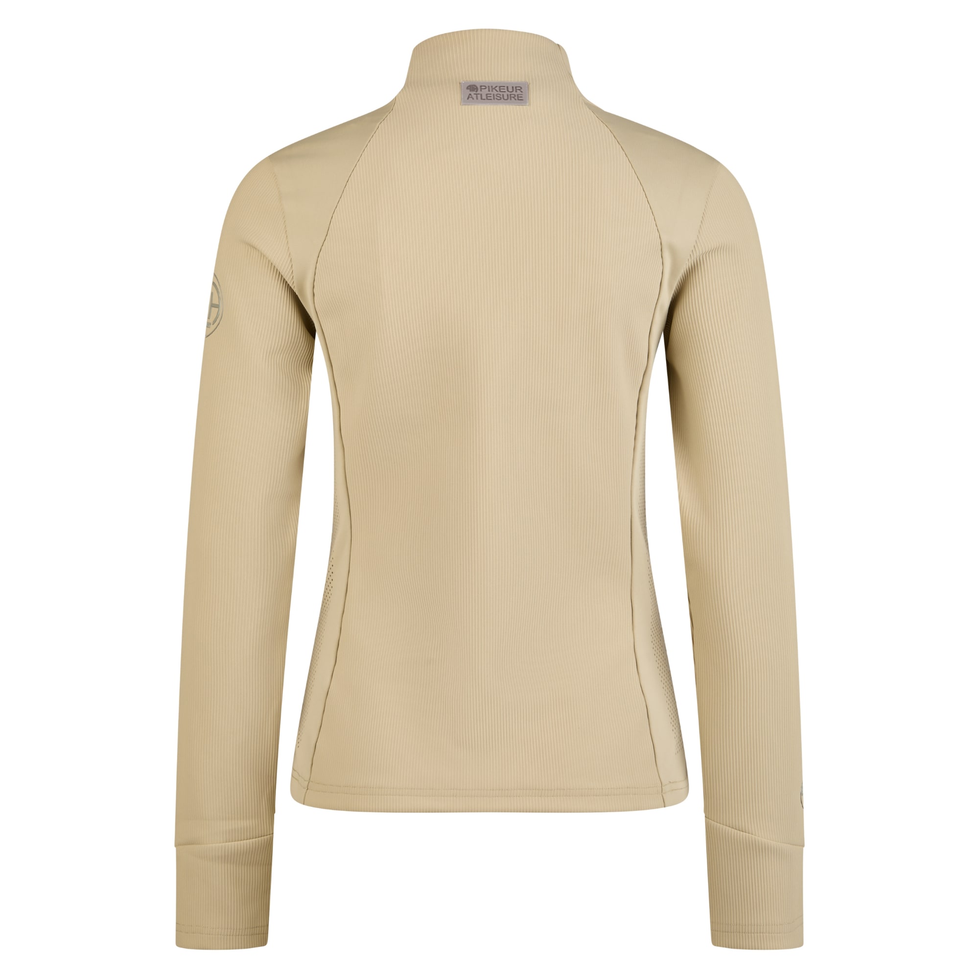 Funktionsshirt von Pikeur aus geripptem Material mit Stehkragen und figurbetonter Passform. Das Modell ist aus einer Materialmischung gefertigt, bei der das gerippte Gewebe eine weiche Oberfläche hat, kombiniert mit einfarbigen Seiteneinsätzen mit Perforierung für erhöhte Belüftung.