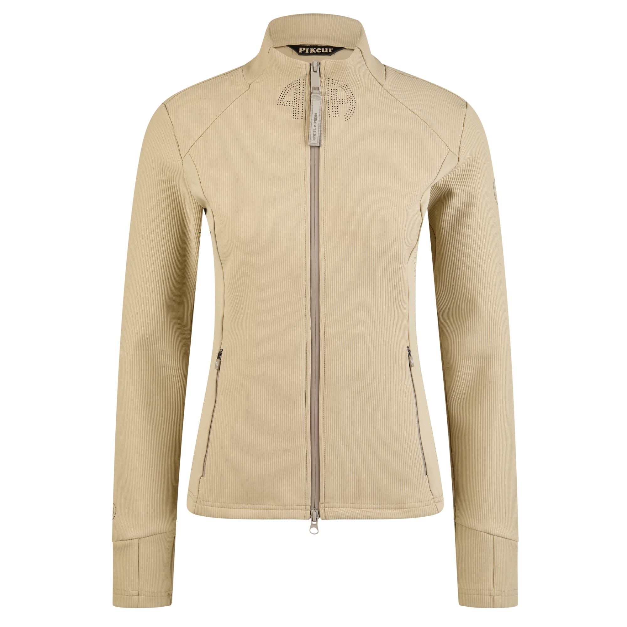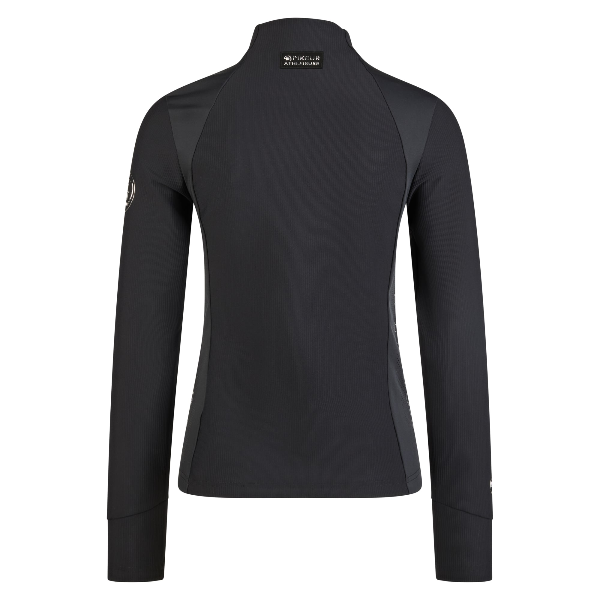 Funktionsshirt von Pikeur aus geripptem Material mit Stehkragen und figurbetonter Passform. Das Modell ist aus einer Materialmischung gefertigt, bei der das gerippte Gewebe eine weiche Oberfläche hat, kombiniert mit einfarbigen Seiteneinsätzen mit Perforierung für erhöhte Belüftung.