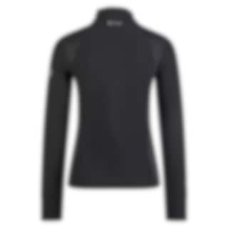 Das Shirt wird vorne mit einem Zwei-Wege-Reißverschluss geschlossen und verfügt über einen dekorativen Zipper. Seitentaschen mit Reißverschluss bieten praktische Aufbewahrungsmöglichkeiten. Am vorderen Kragen befindet sich eine Pikeur-Athleisure-Perforierung, die den technischen Look unterstreicht. Das Design ist reduziert und mit einem glänzend gedruckten Silikonlogo auf den Ärmeln, den Seiteneinsätzen sowie auf einem Etikett im Nacken versehen.