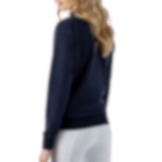 En elegant tröja med dragkedja, lika användbar i stallet som till vardags. Tröjan har hög krage, ribbade ärmslut och sofistkerad Equiline-logo brodyr på bröst och ärmslut.