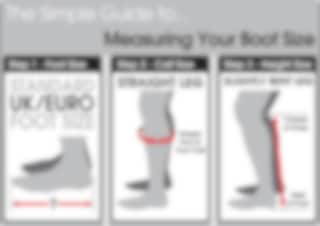 Die Größentabelle der Reitstiefel gibt nur an, welche Schuhgröße, Höhenmaße und Breite an der breitesten Stelle der Wade passen könnten, aber es gibt noch ein paar andere Maße, die wichtig sind. Zum Beispiel ist das Maß knapp unterhalb des Knies ist wichtig, denn ein Standardstiefel ist dort zwischen 1,5-2 cm schmaler als an der breitesten Stelle der Wade. Wenn Sie sehr schmale Beine haben oder ein Bein, das nicht so kurvig ist, kann das Maß unter dem Knie ungefähr gleich der breitesten Stelle der Wade sein, und wenn ja, wird es ein Problem sein, den Stiefel zu schließen. Wenn Sie eine kurvige Wade haben, können die Stiefel stattdessen etwas größer über der breitesten Stelle der Wade sein, da der Stiefel unterhalb des Knies nicht zu eng gemacht werden kann, da die Gefahr besteht, dass stattdessen der Bogen des Reitstiefels in den Oberschenkel schneidet.