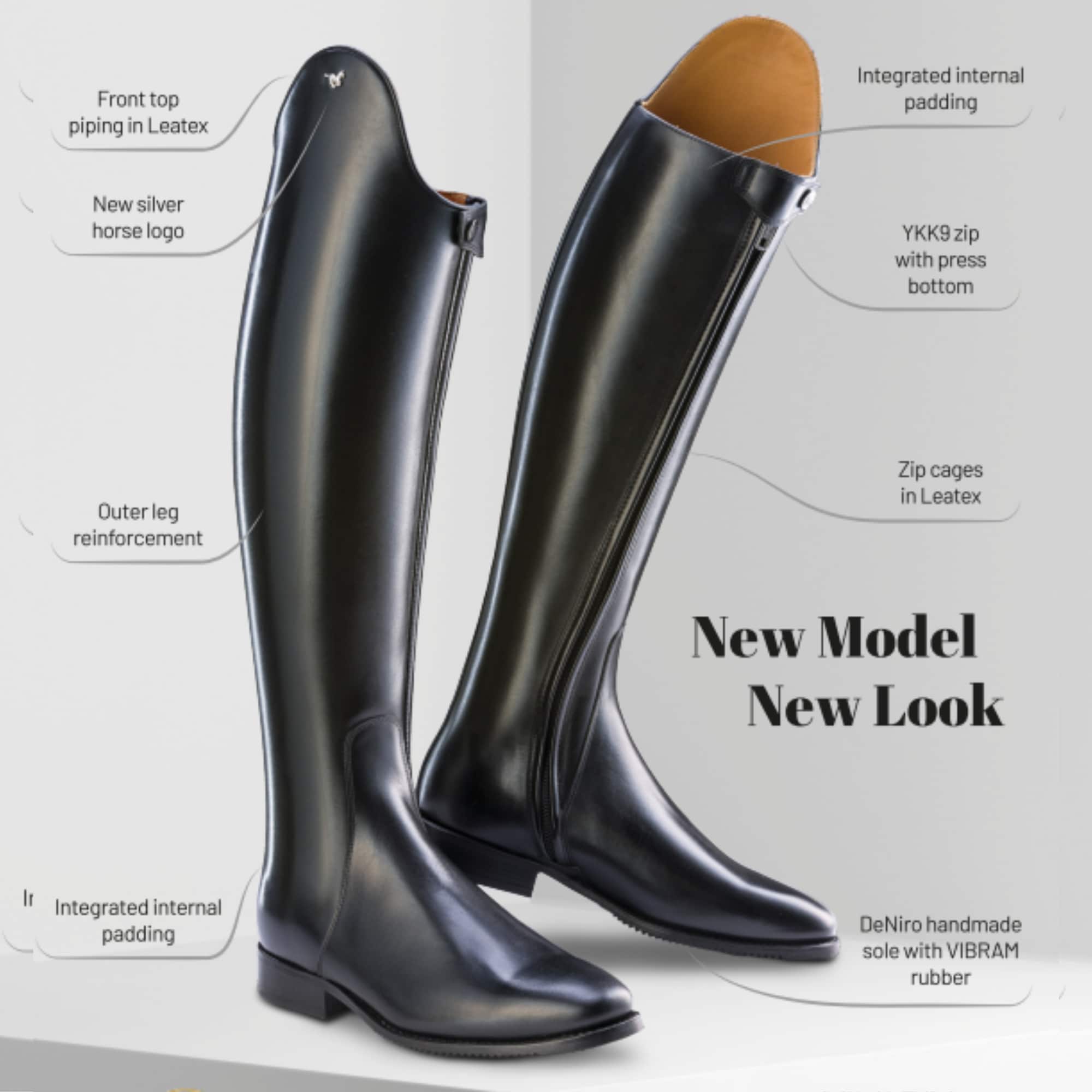 Der DeNiro Signorelli ist ein Dressurstiefel, der zeitlose Eleganz mit moderner Funktionalität verbindet. Das Modell wurde mit Fokus auf klare Linien, Balance und Komfort entwickelt und bietet einen stilvollen Stiefel für Reiter, die sowohl Komfort als auch Design schätzen.