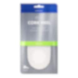 Tillverkade i kork och mjuk skumlatex för komfort och stabilitet. Enkla att använda och fästs med självhäftande tejpremsa mellan sula och häl.