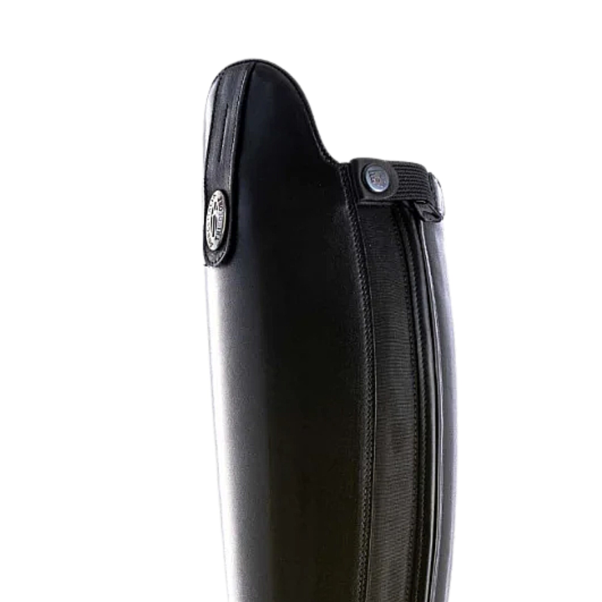 Ein stilvoller Reitstiefel aus weichem, schwarzem Glattleder, der ein angenehmes und anschmiegsames Tragegefühl bietet. Der elastische Einsatz entlang des hinteren Reißverschlusses sorgt für zusätzliche Flexibilität und eine optimale Passform. Mit einem leicht verstärkten Außenschaft eignet sich dieser Stiefel ideal als Allroundmodell für verschiedene Disziplinen.