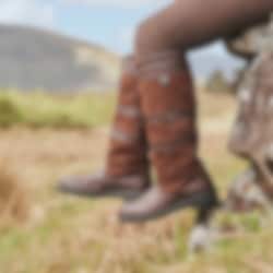 - Lederschnüre an den Knien. - Schlaufen an der Innenseite des Schafts, um das Ausziehen zu erleichtern.