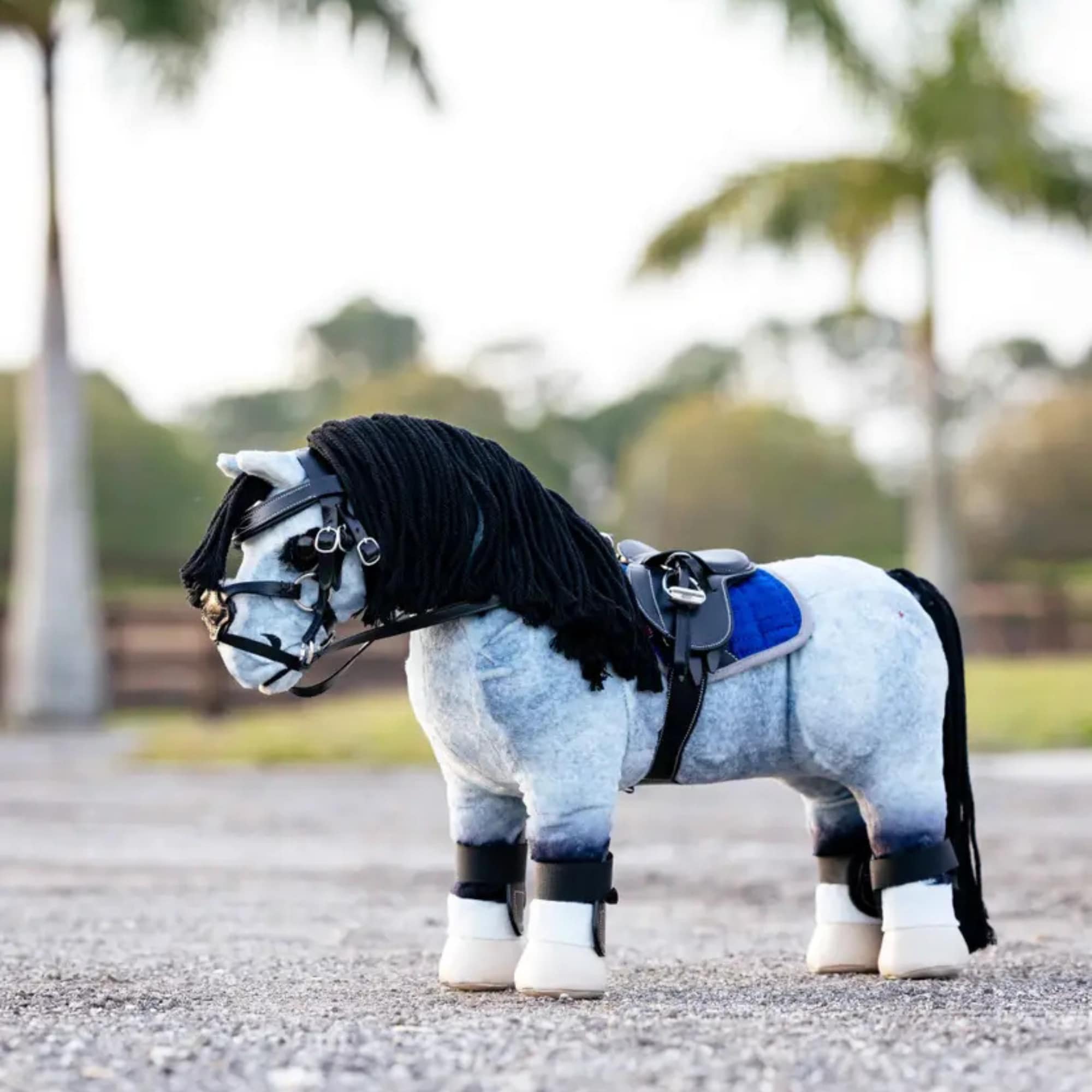 Satteln Sie Ihr LeMieux Toy Pony mit diesem eleganten Springsattel inklusive passender Bauchplatte!