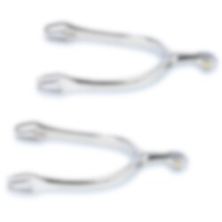 Etwas kräftigere Sporen, recht dick, mit Sternrad. Diese Sporen bestehen aus flexiblem Edelstahl, der an jede Größe angepasst werden kann. 35 mm langer Hals.