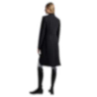 Die körpernahe Passform sorgt für ein klares und stilvolles Erscheinungsbild und wird durch klassische Details wie einen kontrastierenden Alcantara-Kragen, verdeckte Knöpfe und dekorative Paspeln ergänzt.
