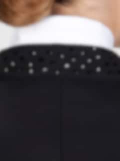 Traumhaft schöner schwarzer Dressurfrack mit Strasssteinen, Equiline Marilyn Dressurfrack hat Strasselemente am Kragen, an den Frackspitzen und am unteren Teil des Rückens.