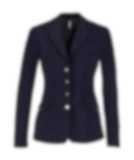 Superschöne Turnierjacke Isalie aus marineblauem, bi-elastischem Material mit dekorativen Ton-in-Ton Strass-Details von Pikeur.