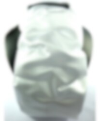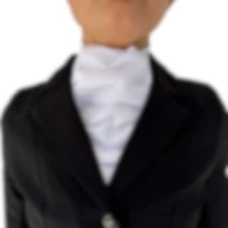 In Falten gelegter Plastron aus Satin. Fertig gebundener Plastron, der mit Klettverschluss um den Hals befestigt wird. Der Plastron ist weiß und ohne Dekoration.