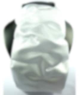 Färdigknuten plastrong som fästes runt halsen med kardborre och vid halsen en pin eller plastrongnål beroende på tycke och smak. Plastrongen är vit utan dekoration.