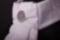 ShowQuest ist ein Meister, was Plastrons und Turnierzubehör betrifft. Hier in Form des Plastrons Esteem - fertig gebundenes Plastron mit schönen und dekorativen Details. Rundes Strass-Detail in Silber am Hals.