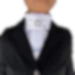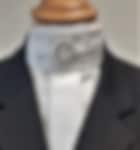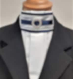 Ein stilvoller weißer Plastron mit einem schönen Band in Marineblau mit silbernem Rand sowie einer dekorativen Strassbrosche von ShowQuest!