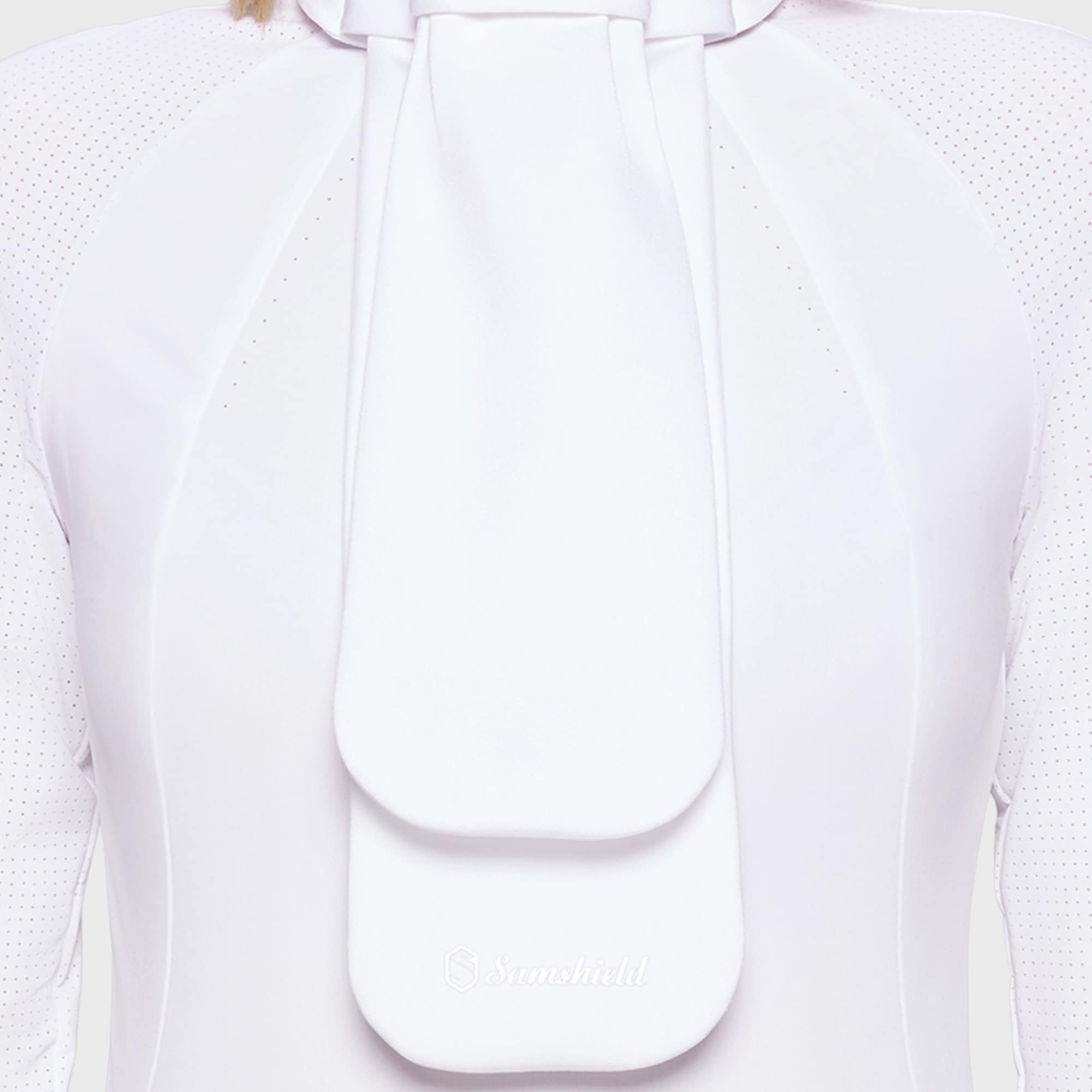Exklusive Plastron von Samshield aus einem elastischen und atmungsaktiven italienischen Funktionsmaterial, das glatt bleibt und nicht knittert. Die längere Schnittform sorgt für eine elegante Silhouette und bietet gleichzeitig hohen Tragekomfort.
