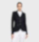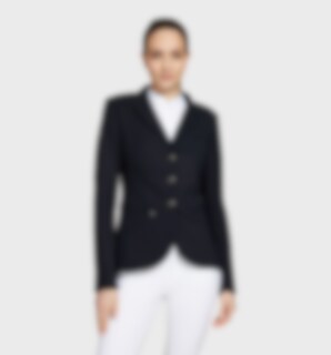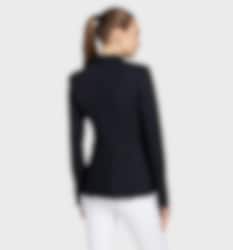 Diese Turnierjacke von Samshield ist unglaublich elegant und dank des dehnbaren Stoffes auch sehr bequem. Die Turnierjacke verfügt über schöne funkelnde Details in Form von schwarzen Swarovski®-Steinen am Kragen und am Rücken. Das glitzernde Material heißt Crystal Fabric und kann nach Wunsch auch auf Ihren Reithelm von Samshield verwendet werden.