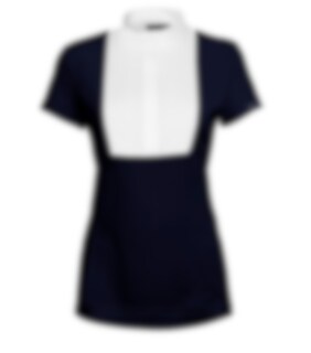Natürlich kann man es auch hervorragend als einzige Schicht an heißen Sommertagen tragen Das Turnierhemd hat eine schöne marineblaue Farbe mit weißem Kragen und weißer Brust.