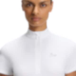 Maira ist ein elegantes und funktionelles Turniertop von BOSS Equestrian, gefertigt aus einem technischen, elastischen und atmungsaktiven Material. Der leichte und schnelltrocknende Stoff verfügt über einen UV-Schutz, der die Haut an langen Tagen im Freien schützt. Der praktische Reißverschluss vorne erleichtert das An- und Ausziehen und ermöglicht es, die Öffnung nach Bedarf zu regulieren.