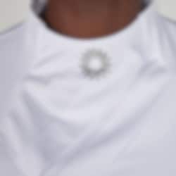 Das Pikeur Turniershirt in Weiß ist ein stilvolles Turniertop mit dekorativen Details und klassischer Turnierausführung. Das Modell ist tailliert geschnitten und verfügt über eine plissierte Brustpartie, die eine elegante Form verleiht.