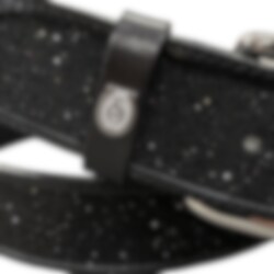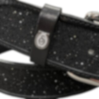 Ein eleganter Gürtel aus hochwertigem schwarzem Leder, verziert mit Crystal Fabric in Jet von Swarovski.