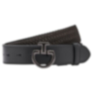 Dieser elastische Gürtel ist schwarz. Das geflochtene Material ist dehnbar und erhöht so den Tragekomfort des Gürtels, der sich sowohl zu Reithosen als auch zu Alltagsjeans perfekt kombinieren lässt. Die Schnalle des Gürtels ist wie das Logo von Cavalleria Toscana gestaltet.