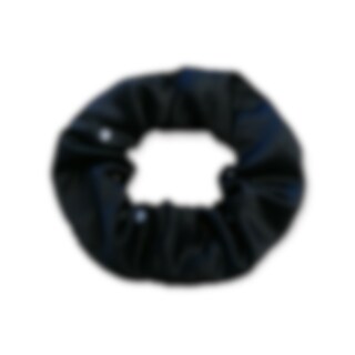 Schlichtes, aber elegantes Haargummi aus einem etwas stärkeren, schwarzen Satin mit 6 klaren Kristallen.