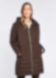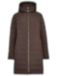 Die Daunenjacke hat vorne einen Zwei-Wege-Reißverschluss, zwei Taschen und eine abnehmbare Kapuze. Waschmaschinenfest.