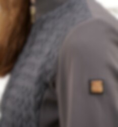 Neben der schönen Steppung auf der Vorderseite verfügt Ebesse Softshell auch über stilvolle Details in Form des Equiline-Schriftzugs in Schwarz auf dem linken Ärmel und einem dezenten Equiline-Logo auf der linken Schulter.