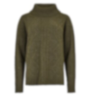 Der Pullover hat einen gemütlichen Rollkragen und eine schmeichelnde, lockere Passform. Gerippte Details an Kragen, Ärmelbündchen und Saum verleihen ihm ein stilvolles Finish.