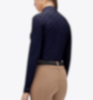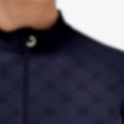 Der leichte Fleecepullover ist sowohl sehr stylisch als auch sehr angenehm zu tragen. Er ist in einem dunklen Marineblau gehalten und hat ein wunderschönes Ton-in-Ton-Muster auf der Vorder- und Rückseite. Die Ärmel und Seiten sind ungemustert und es gibt einen Reißverschluss vorne am Kragen.