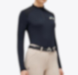 Das Lightweight Performance Piqué L/S ist ein Trainingsshirt in Marineblau mit hohem Kragen, langen Ärmeln und 1/4-Reißverschluss. Das Shirt besteht aus einem unglaublich weichen, leichten und dehnbaren Material, das mit seinen technischen Eigenschaften ein perfektes Shirt für das Training auf dem Pferderücken ist.