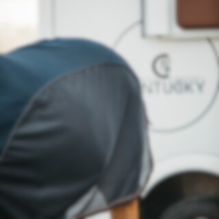 Die Decke ist am Rücken anatomisch geformt und passt sich der Form des Pferdes gut an. Für zusätzlichen Komfort gibt es auch eine Lammfell-Polsterung am Widerrist und abnehmbare Kreuzgurte am Bauch. Darüber hinaus ist das Kentucky-Logo in Lederimitat abgebildet, was der Decke einen luxuriösen Look verleiht.