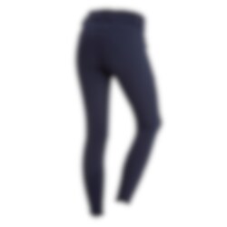 Die Reithose besteht aus Micro-X Polyester/Elasthan, einem leichten und funktionellen Material, das dem Reiter sowohl Komfort als auch Bewegungsfreiheit bietet. Die Hose hat eine normal hohe Taille und einen Kniebesatz mit Silikon-Grip. Auf der Vorderseite hat die Reithose zwei Taschen, eine davon ist eine Handytasche mit Reißverschluss. Der Beinabschluss ist aus Lycra, was sehr bequem ist.