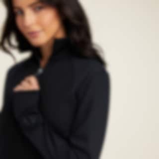 Die Innenseite des Pullis ist teilweise mit weichem Fleece gefüttert. Reflexdruck auf dem Rücken und dem rechten Ärmel. Wird mit einem 1/2 Reißverschluss geschlossen.