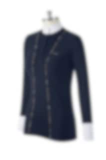 Bimix LS Polo von Animo hat ein schönes marineblaues Rippmaterial mit glatten Ärmeln. Das Wettkampftrikot ist unglaublich dehnbar, bequem und hat vorne Knöpfe und einen weißen Hemdkragen. Das Bimix Turniershirt hat das klassische Animo Logo in glitzernden Steinchen auf der Brust.