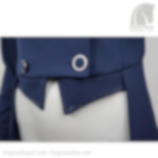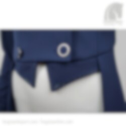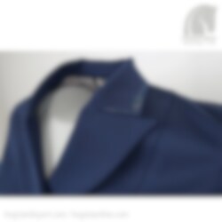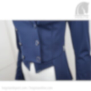 Die Liena Turnierjacke für Reiter schließt mit einem Reißverschluss und eleganten Knöpfen in Marine / Silber. Sie hat schöne glitzernde Steine am Kragen und an der Weste.