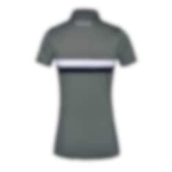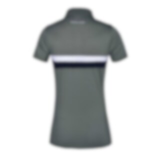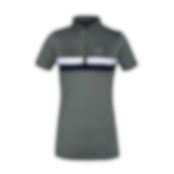 Dieses Reitshirt besteht aus einem schnelltrocknendem Funktionsmaterial mit guter Atmungsaktivität. Über Brust und Rücken befinden sich Streifen in Kontrastfarben. Das Piqué hat Knöpfe vorne und ein gesticktes Logo auf der Brust und mittig hinten am Kragen.