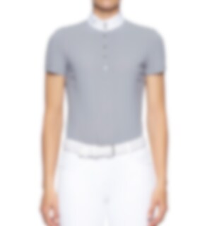 Plissee Turniershirt von Cavalleria Toscana. Ein elegantes kurzärmeliges Turniershirt aus weichem und flexiblem Jersey. Vorne gefaltet und langer Schlitz mit Knöpfen mit dem Logo der Cavalleria Toscana. Das CT-Logo befindet sich ebenfalls am weißen Kragen.