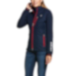 Ausgestattet mit einem doppelten Reißverschluss und einer Brusttasche sowie doppelten Seitentaschen mit Reißverschluss. Farbe Marine mit schönen roten Details und Ariat-Text entlang eines Ärmels und Ariat-Logo auf der Brust.