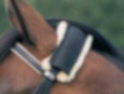 Ergänzendes Nackenpad aus Schaffell, der das Risiko von Druck und Scheuern im Genick des Pferdes verringert.