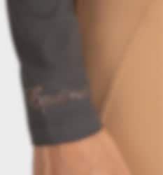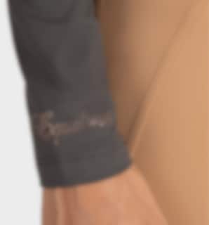 Ebrande Second Skin hat auch schöne Details in Form des Equiline-Logos mit den drei Pferdeköpfen in Roségold auf der linken Brust und dem Equiline-Schriftzug unten auf dem rechten Ärmel.