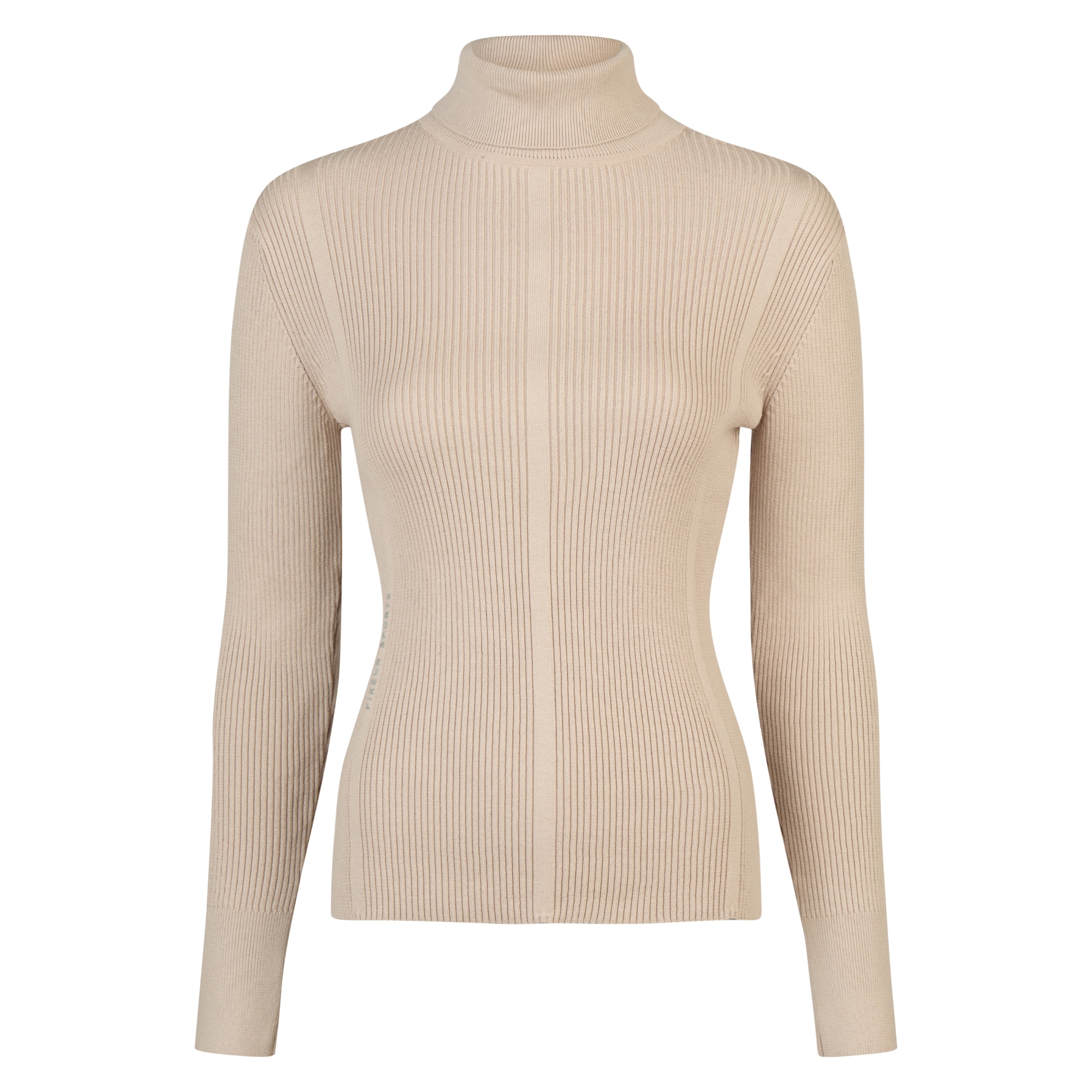 Stilvoller, gestrickter Rollkragenpullover aus gerippter Baumwolle mit eleganter, körpernaher Passform. Der Pullover verfügt über Schlitze am Kragen und an den Ärmelabschlüssen für mehr Bewegungsfreiheit und Komfort. Breite Rippenpartien vorne und hinten sind mit einem Ton-in-Ton Pikeur-Flockdruck verziert, der für einen dezenten, aber exklusiven Look sorgt.