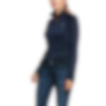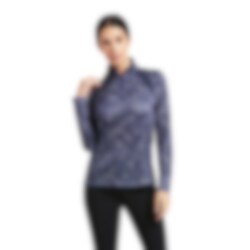 Das Reitshirt hat einen Reißverschluss am Hals und einen Stehkragen.