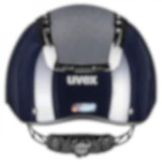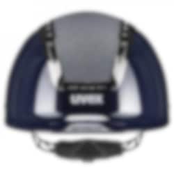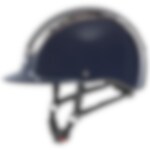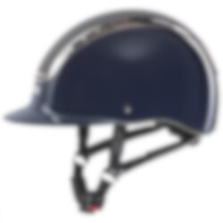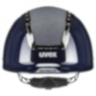Der Reithelm Suxxeed Blaze von Uvex ist ein richtig eleganter marineblauer Reithelm mit einer schönen glänzenden Oberfläche und einem glitzernden Top.