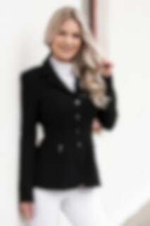 Schwarze Turnierjacke von Horse Life. Wilma ist eine stylische, figurbetonte Turnierjacke aus einem flexiblen, schönen Material.